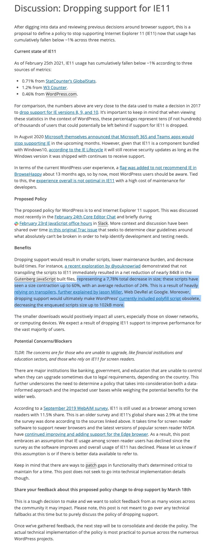 Swyx On Twitter Oh Wow My Blogpost Was Cited In Drupal S Decision To Drop Ie11 Support Https T Co Gkufrxfi0t There S Even Support From Webaim Our Official Recommendation Is That Ie Die A Fast And